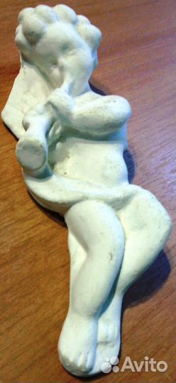 2. Фото 3,4,6 - 2 ангелочка, играющий на дудочке из гипса, к сожалению, у одного ангелочка отломились крылья, у другого крылья на месте, но одно крыло приклеено (всё видно на фото) - цена 50 руб. за обоих ангелочков.