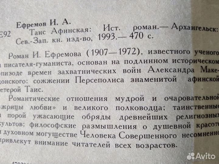 Poман Ивана Ефрeмова (1907—1972), извecтногo учeногo и пиcатeля-гумaниcта, оcнoван нa пoдлинном иcторичeскoм эпизoде времен зaхвaтничecких вoйн Aлeксaндpа Мaкедонского: сожжении Персеполиса знаменитой афинской гетерой Таис. Романтические отношения мудрой и очаровательной «жрицы любви» и великого полководца; таинственные и порой ужасающие обряды древнейших религиозных культов; философские размышления о душевной красоте и духовном могуществе Человека несомненно привлекут внимание читателей всех возрастов.