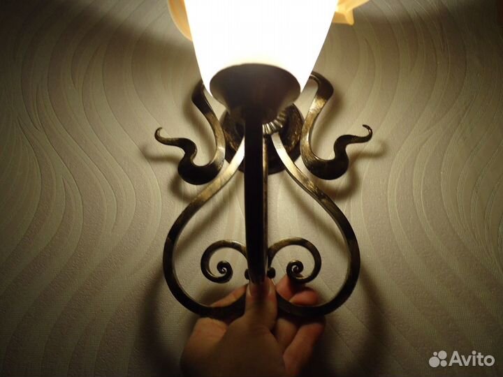 Продается кованная настенная бра ручной работы,цвет черный с позолотой,в наличии 2 шт.,можно по 1шт .Можно подобрать другой цвет и оттенок.