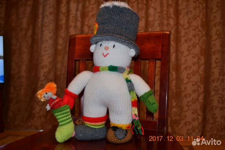 Интерьерная игрушка, связаная из шерсти, "Снеговик и мальчик-с-пальчик" поможет создать весёлое новогоднее настроение!Вязаная вручную, мягкая, тёплая, игрушка из шерсти украсит новогодний интерьер Вашего дома!