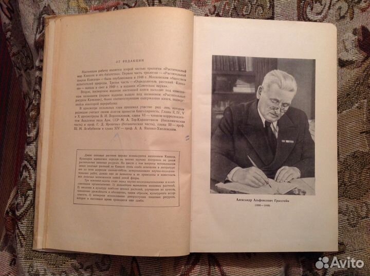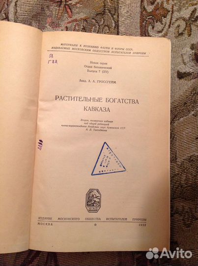 Редкая книга букинист антикварное издание "Растительные богатства Кавказа". Академик А.А. Гроссгейм. Второе, посмертное издание под общей редакцией чл.-корр. АН Армянской ССР А.Л. Тахтаджяна. Издание Московского общества испытателей природы, Москва, 1952. - 632 стр. Тираж 2000 экземпляров. Переплет твердый. Состояние приличное. Размер книги 17*27*4 см.