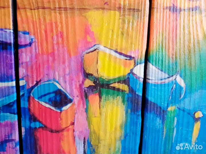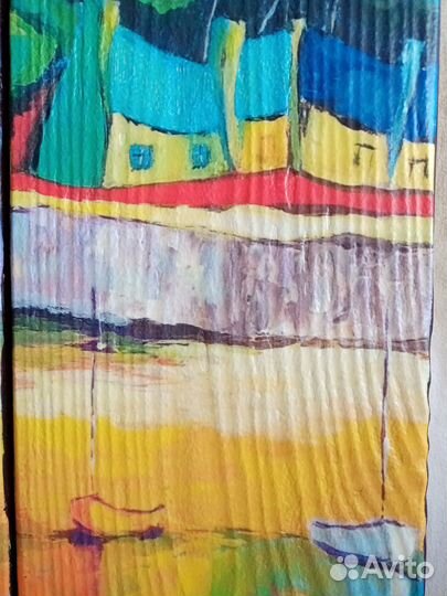 "Рыбацкие лодки" Картина на досках