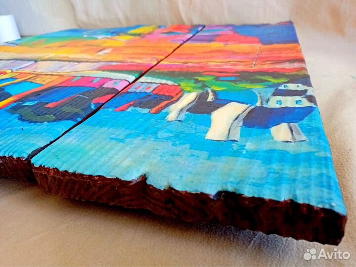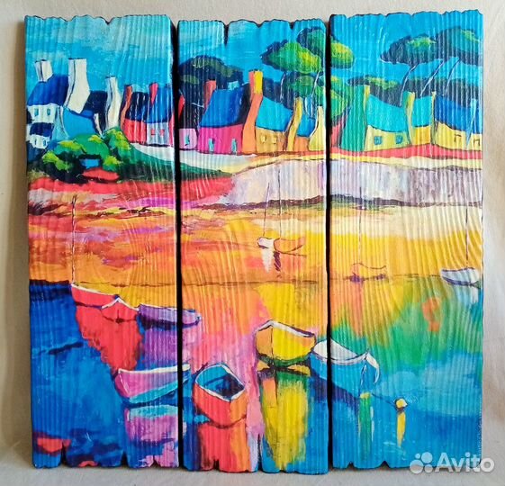 #картина #картинанадосках #пейзаж #море #лодки #бухта #причал #подарок #интерьер