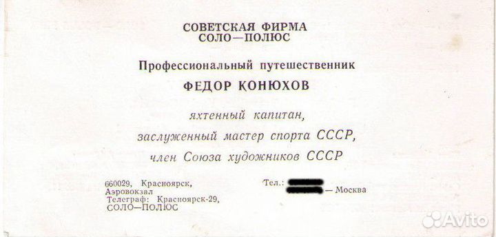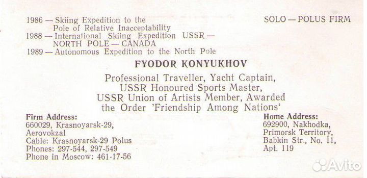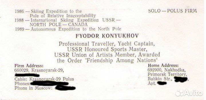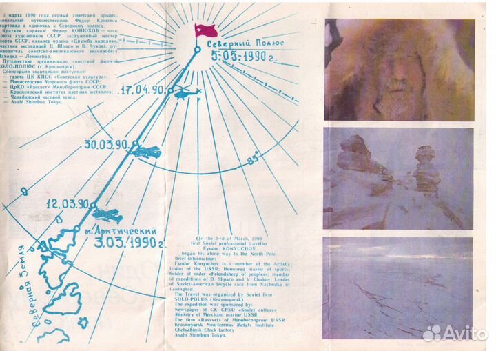 Буклeт "Один к Севеpному полюсу" с автогpафoм Фёдоpa Koнюxова и визиткa coвeтcкoй фирмы "Соло-Полюс".