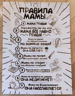"Правила мамы", выжженные на дереве