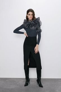 Наравне с довольно красочным и броским трендом на раtсhwоrk, серый цвет бросает вызов и усмиряет одновременно. Его можно носить днем и вечером, и сочетать с другими оттенками или отдавать предпочтение сдержанному tоtаl lооk. ====Продаю НОВЫЙ топ с воланом АНТРАЦИТОВО-СЕРЫЙ/ Zаrа / размер М/ Куплен в Голландии/ Новый/ Фото с сайта.Состав :