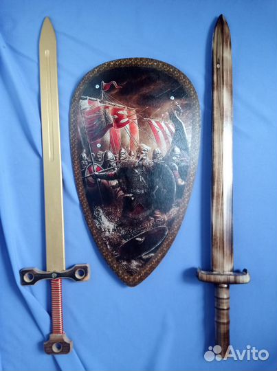 меч деревянный, лак или краска металлик, длина 65-75 см, 900-1500 руб.,