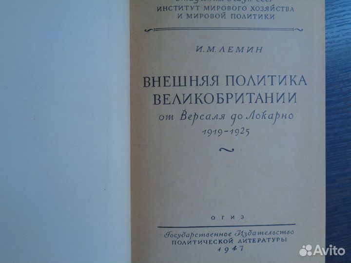 Продаю книгу "Внешняя политика Великобритании" И. М. Лемина От Версаля до Локарно 1919-1925 ОГИЗ Государственное издательство политической литературы (госполитиздат) 1947 год, в твердой обложке, тираж 10 000 экз.