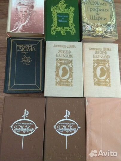Книги Александра Дюма: "Граф Монте Кристо"- проданы, "Три мушкетёра"- проданы, "10 лет спустя"- проданы, "20 лет спустя" - проданы, 100 руб. за том. Остальные "Сорок пять", "Жозеф Бальзамо" 2 тома, "Графиня де Шарни", "Ожерелье королевы", "Анж Питу" и др. по отдельности - 70 руб. за том.