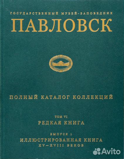 Каталог «Павловский дворец-музей. Т. VI, Редкая книга. Вып. 1. Иллюстрированная книга ХV – XVIII веков». Каталог фонда Редкой книги музея-заповедника, богато иллюстрирован редчайшими иллюстрациями, выполненными в различных старинных техниках.