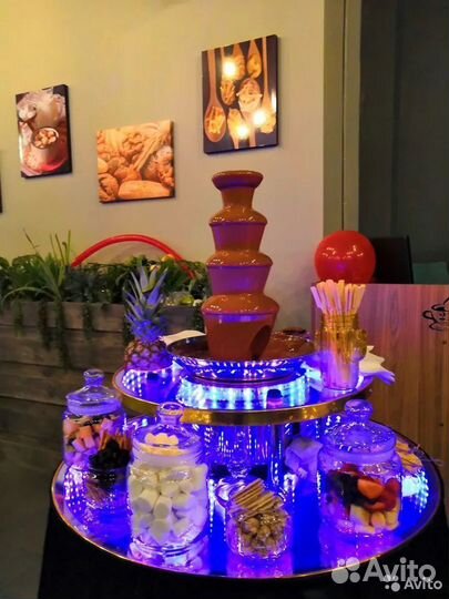 Яркая подставка в стиле "Бесконечность" стола для шоколадного фонтана, пальчики оближут и взрослые, дети и даже перфекционисты)