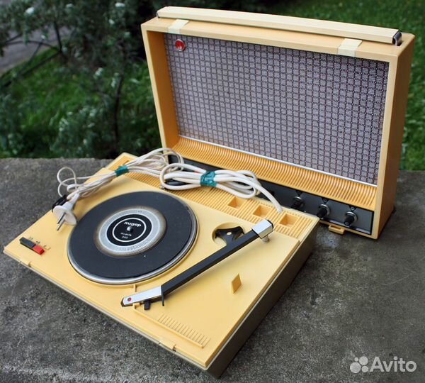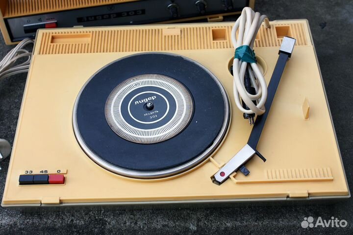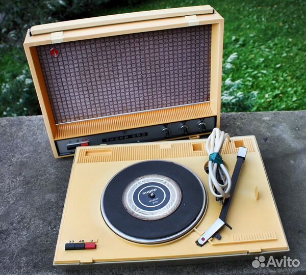 Пластинки воспроизводит, звук громкий. Но бывает так, что плохо фиксируется кнопка переключения скорости и аппарат переходит на другую скорость.