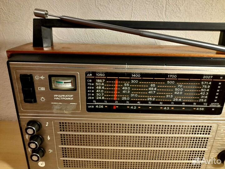 Радиостанции принимает. Звук громкий. Какие-то станции принимает - чётко. Какие-то, с небольшими помехами. Осмотр и проверка - на месте. Сетевой шнур - НЕ отсоединяется, заведён внутрь, видно на фото. Батарейный отсек - чистый. Подсветка шкалы - не работает.