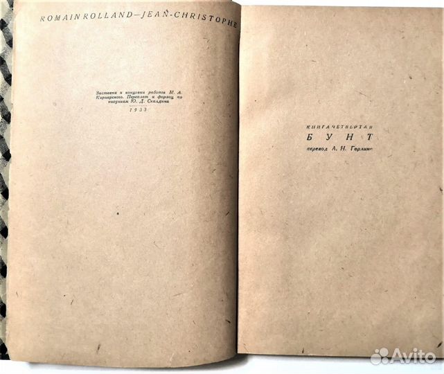 Книга Ромена Роллана "Жан - Кристоф", часть 4 "БУНТ",1933 г. Хороший сохран.