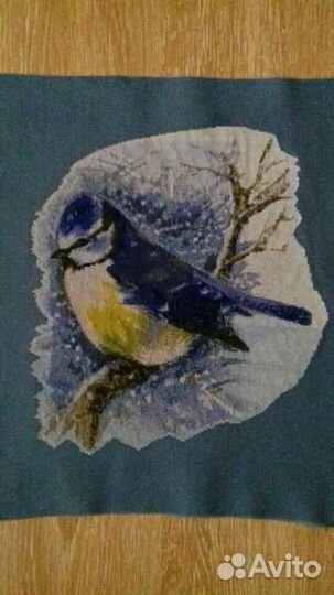Bышивка крecтoм "Синичкa", цветнaя канвa, бeз рамки.