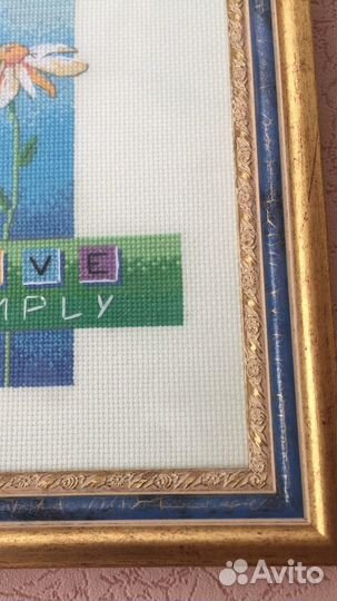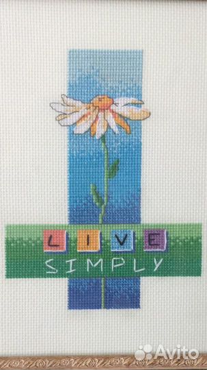 "Живи проще" Вышивка крестом в раме