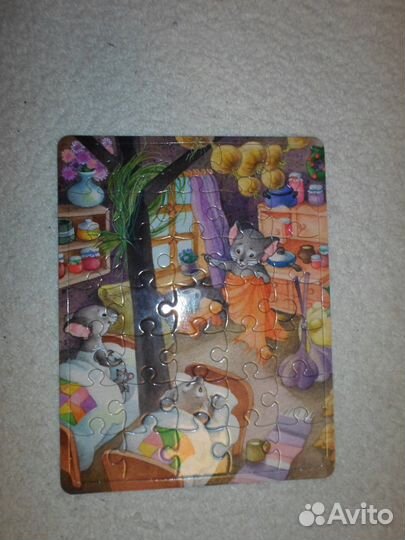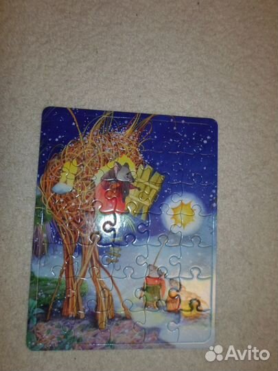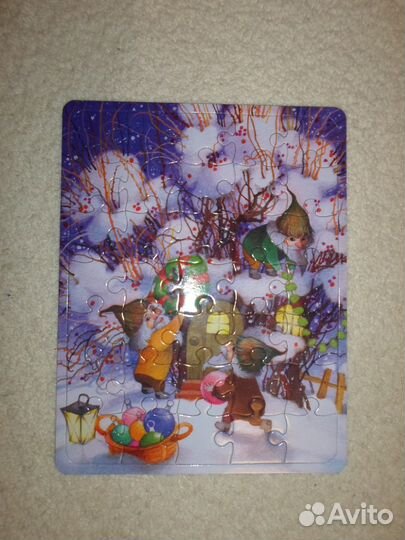 Продам набор новогодних пазлов с интересным сюжетом. В набор входит 5 пазлов по 35 деталей. Плотный картон, состояние хорошее.