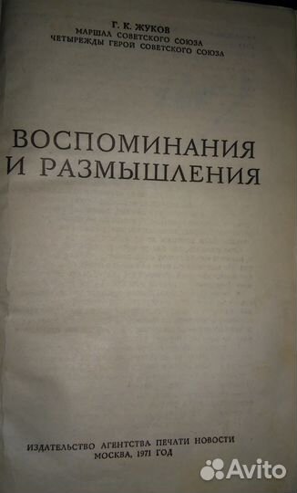 "Воспоминания и размышления", Жуков Г. К., ИПЛ, 1973 г..